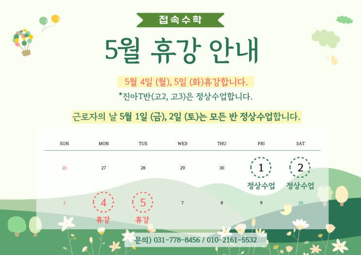 [접속수학학원] 5월 휴강 및 수업 일정 안내