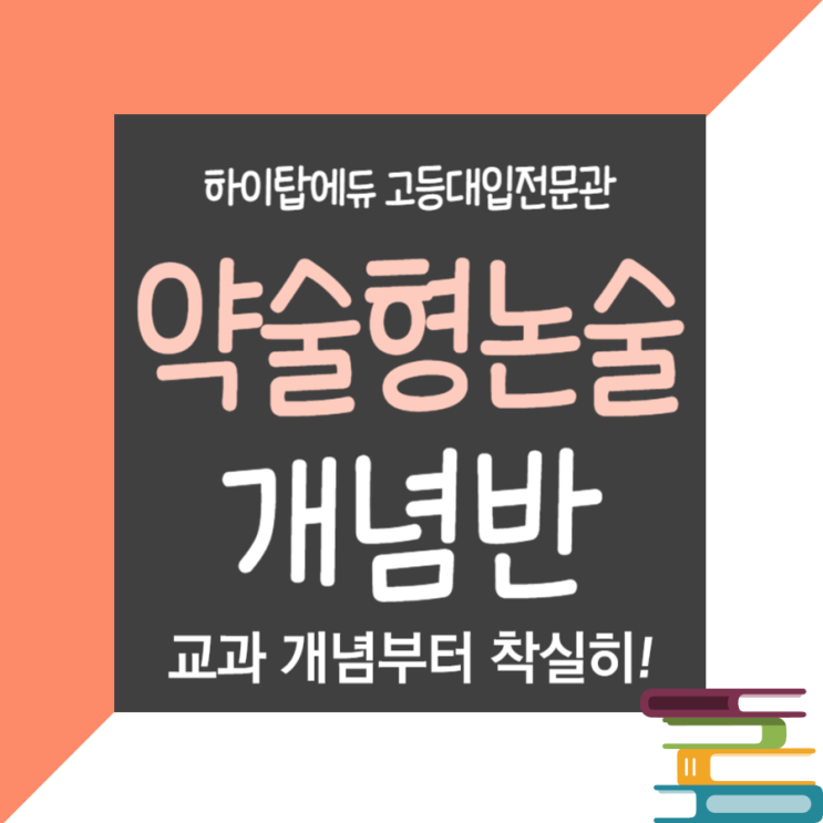 이번 약술형 논술 개념반은 정규반을 수강하는 학생들이 추가로 듣는 단기특강입니다. 중간고사 이후 약술형 논술 개념반 (수1·수2)이 개강됩니다. 하이탑에듀 고등관 약술형 논술 개념반을 추천하는 학생 ▶약술형 논술 대비를 처음 시작하는 학생 ▶내신 3등급 미만이며 비교과 준비가 부족한 학생 ▶모의고사 4등급 수준에서 수도권 대학을 목표하는 학생 STEP 01. 약술형 논술 개념반 (교과 개념부터 확실히) 핵심 교과 개념 정리 출제 기본 유형 완성 STEP 02. 약술형 논술 심화반 (반복 + 응용 훈련) 심화 개념 정리 출제 변형 유형 완성 월 2회 모의고사 + 첨삭 진행 STEP 03. 약술형 논술 실전 모의고사반 (약술은 실전이다) 실제 시험형....... <img src="https://blogthumb.pstatic.net/MjAyNjA0MjNfMTI0/MDAxNzc2OTM3NjcxMDI0.zpKAc_sRegtpNGI01aIWWFtSM58fyNG7w_Xbq_UrDHUg.V36GqA0T1rfj0PNtolrTN8OiH7sS4bZrZR3__myM9lMg.PNG/%BA%ED%B7%CE%B1%D7_%BD%E6%B3%D7%C0%CF-003.png?type=s3" />
