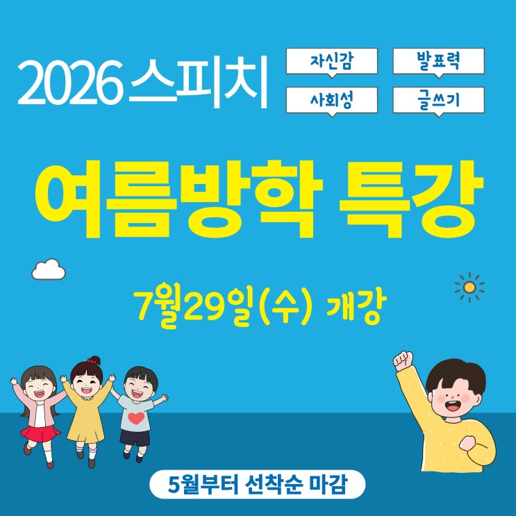 2026 부천, 인천 스피치 여름방학 특강 모집 (자존감, 자신감, 사회성까지 한 번에)