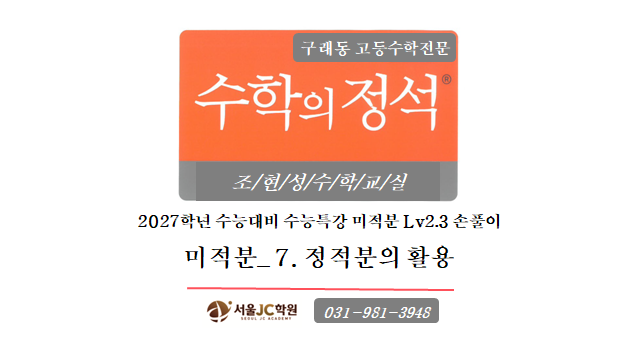 [구래동 수학의 정석] 서울JC학원_2027대비 수능특강 미적분 Lv2.3 손풀이_7.정적분의 활용