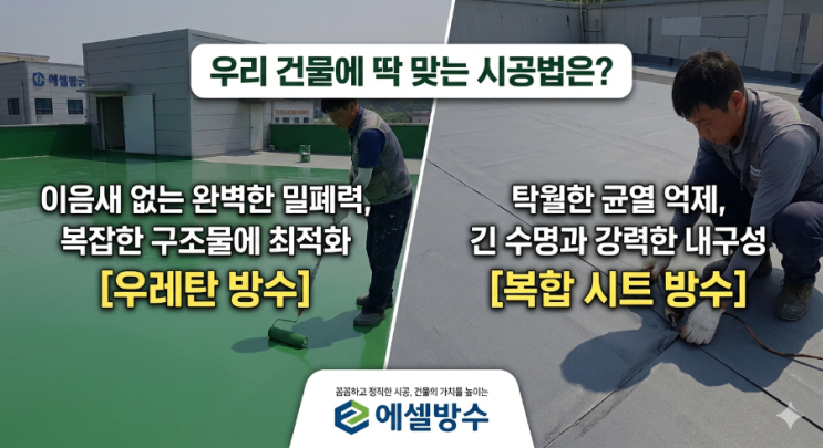 [옥상 방수 고민 해결] 우레탄 방수 vs 복합 시트 방수, 우리 건물에 딱 맞는 시공법은?