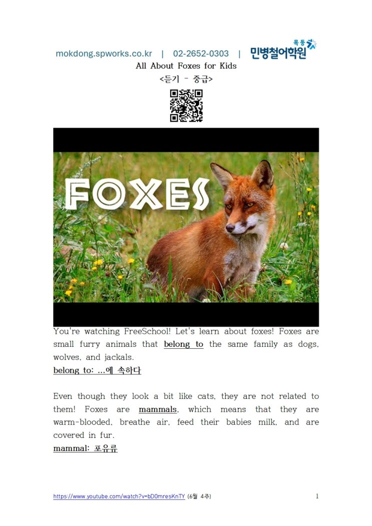 All About Foxes for Kids (중급)