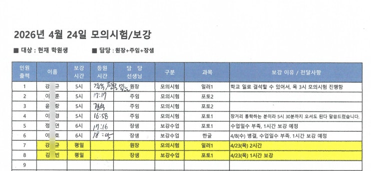 4/24(금) "GTQ 모의시험 및 보강수업" 결과 보고