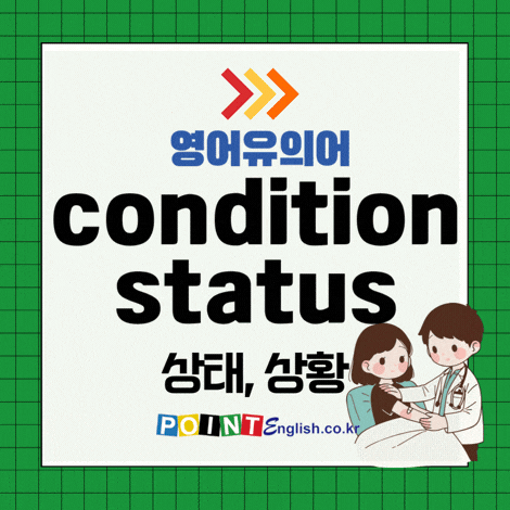 상태, 상황 영어유의어 - case, condition, context, mode, phase, position, situation, state, status 외 Synonym, 유사어 안녕하세요. 여러분의 영어 궁금증을 해결해 드리고, 영어 실력 향상에 도움을 드리고픈 포인트영어입니다. 영어를 공부하다 보면 '상태'나 '상황'을 말하고 싶을 때 어떤 단어를 써야 할지 막막할 때가 있습니다. 우리말로는 비슷해 보여도, 영어에서는 그것이 물리적인 보존 상태인지, 처해 있는 환경인지, 혹은 진행 단계인지에 따라 선택이 달라집니다. '상태'와 '상황'을 의미하는 주요 [명사] 12가지를 알파벳 순서대로 정리해 드립니다. 그전에 먼저 우리말로 사전적 의....... <img src="https://blogthumb.pstatic.net/MjAyNjAzMjNfMTU1/MDAxNzc0MjYwMjc0NDk3.WMDgIUDoTZqsrrZnx1CknBCCFRIkMOhMcU1XruIMhIwg.Mc0Px0driKaan9Bx6DgLD28nMBs-GoMKrSl8NzRZ6wMg.GIF/%BF%B5%BE%EE%C0%AF%C0%C7%BE%EE_condition.gif?type=s3" />