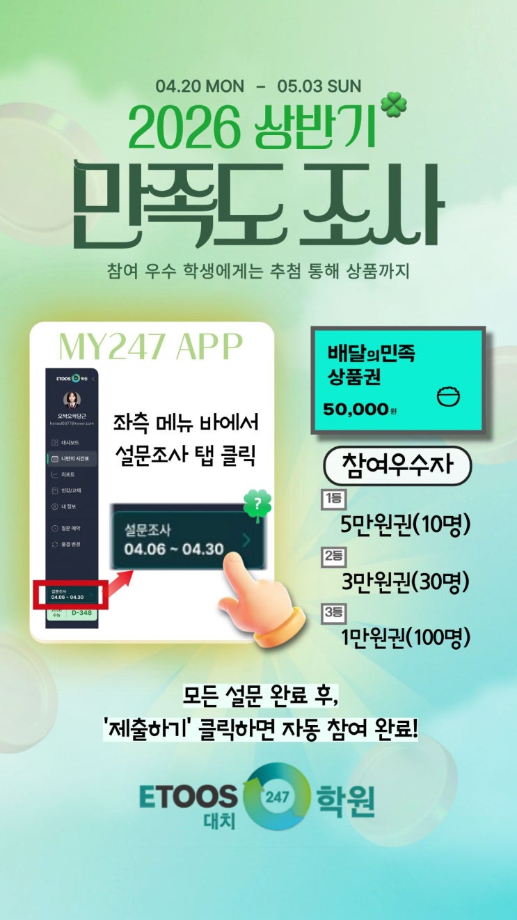 [이투스247 대치] 2026 상반기 만족도 조사 OPEN