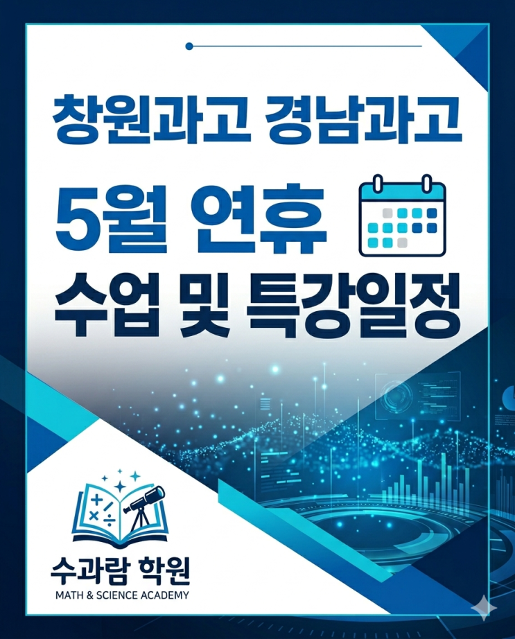 창원과고·경남과고 재학생 5월 연휴 특강기말고사 대비 수학·화학·생명과학 집중 관리가 필요한 이유 수과람학원