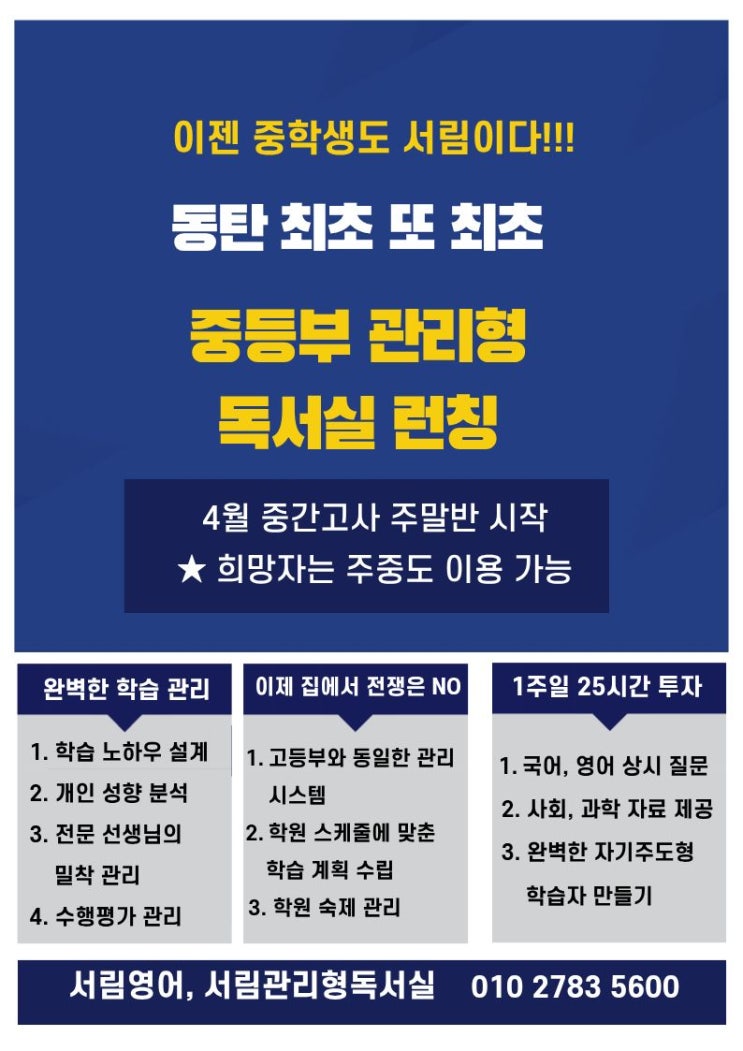 중2·중3 기말고사, 지금 시작해야 성적이 바뀝니다. 동탄 남광장 중등고등 내신 전문반 모집 (국영수과 전과목)