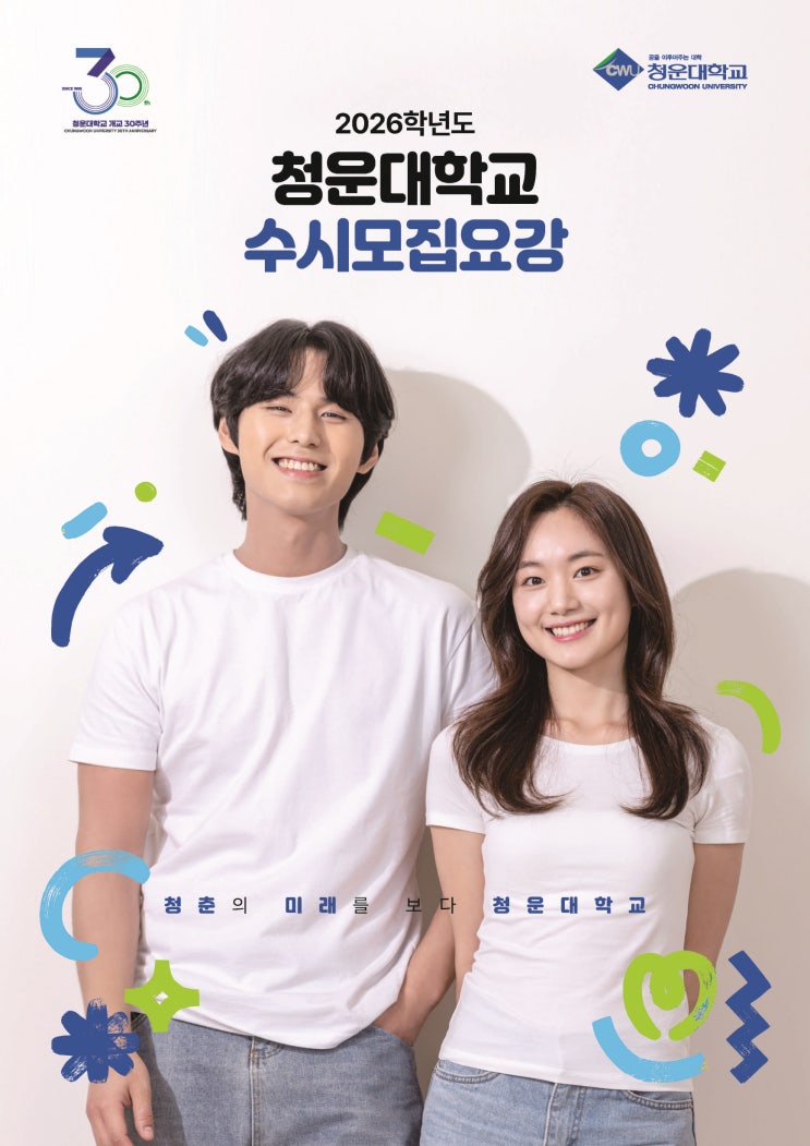2026 학년도 청운대학교 수시모집전형 <img src="https://blogthumb.pstatic.net/MjAyNjA0MjVfMjcg/MDAxNzc3MDczNTM2MDUy.IbUvx0KM2XvlrWBAn-XKSOOYU-1DBp4jrANPLzgY4SEg.wRafbRi-zLCgLrQZawB91Vo07UW3ZqPaB_NboYboRWwg.JPEG/2026_%C7%D0%B3%E2%B5%B5_%C3%BB%BF%EE%B4%EB%C7%D0%B1%B3_%BC%F6%BD%C3%B8%F0%C1%FD%C0%FC%C7%FC_%C6%E4%C0%CC%C1%F6_01.jpg?type=s3" />