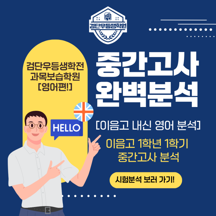안녕하세요~ 검단우등생학원입니다! 이번 글에서는 4월 27일 치러진 이음고 1학년 공통영어1 중간고사를 분석해 보겠습니다~ 전반적 평가 난이도: 평이 (中) 솔직히 말씀드리면.. 이번 이음고 1학년 영어 시험, 모의고사를 제대로 공부한 학생이라면 크게 어렵지 않았을 시험입니다. 유형 변형이 있긴 했지만 지문 자체는 거의 그대로였고, 낯선 소재나 고난도 지문이 따로 출제되지 않았습니다. 다시 말하자면, 모의고사를 알면 풀 수 있는 시험. 모의고사를 모르면 막막한 시험. 이 두 부류가 완전히 나뉘었을 거라고 봅니다. → 모의고사 19문항 / 교과서 4문항 = 약 83% vs 17% 26년 모의고사가 25년보다 더 많이 출제됐다는 것도 포인....... <img src="https://blogthumb.pstatic.net/MjAyNjA0MjhfMjUg/MDAxNzc3Mzc1MTg3NjM2.vBHPtFChU9m3T20ESYiaHlIno8MnQnMITtmVdz5JHDYg.oui-F6KFJUZ1ktPGQS4mqhG-BEZeI2bpRxZdMMlanIcg.PNG/1.png?type=s3" />