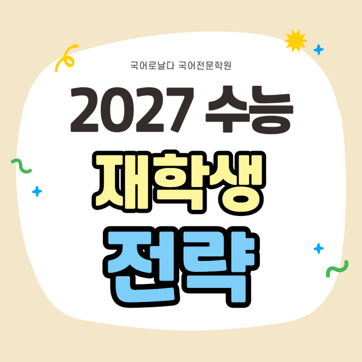 안녕하세요. 검단신도시 입시국어 1타, 국어로날다 국어전문학원입니다. 2027학년도 대학수학능력시험은 그 어느 해보다 경쟁이 치열해질 것으로 보입니다. 특히 N수생(재수·삼수 이상)의 대규모 유입이 예상되면서, 고3 재학생 입장에서는 심리적 부담이 커질 수밖에 없는 상황입니다. 구조를 이해하고 전략적으로 접근한다면, 재학생에게도 큰 기회가 될 것입니다. 이번 글에서는 변화하는 입시 환경 속에서 재학생이 취해야 할 현실적인 전략을 정리해 보겠습니다. 2027년 대수능, 경쟁이 치열할 것으로 예상 1. 왜 2027 수능은 더 치열한가 올해 입시에서 N수생이 증가할 것으로 보는 이유는 크게 세 가지입니다. 첫째, 선택과목 체제가 적용....... <img src="https://blogthumb.pstatic.net/MjAyNjA0MTdfOSAg/MDAxNzc2NDIwNjE3Mjc3.70niFhr1ilArJb4BfLPGlPqOuurdG_4oVWbe3_8O_Ysg.-cU6L5E9hy_nXJKIgYbsVsWBp-5DGu56QlYWKn-ClXgg.PNG/%C1%A6%B8%F1%C0%BB_%C0%D4%B7%C2%C7%D8%C1%D6%BC%BC%BF%E4._%284%29.png?type=s3" />