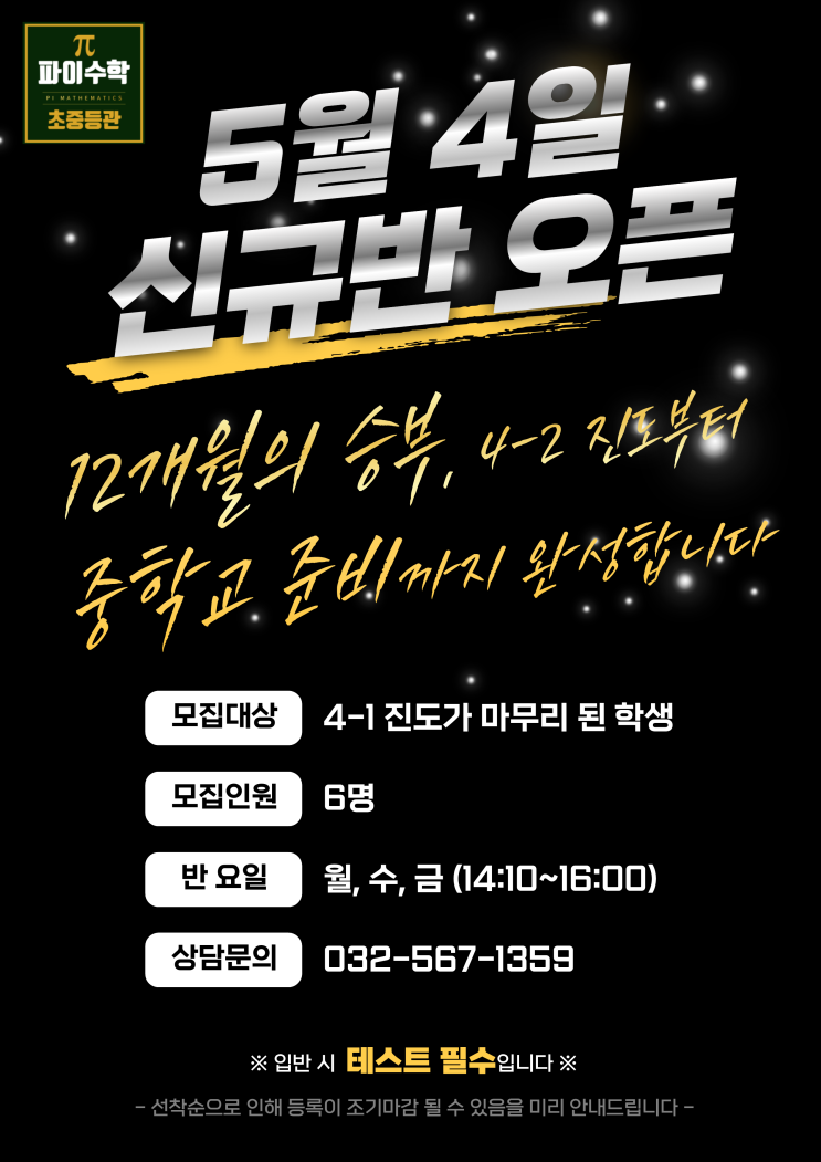 [검단파이수학학원] 초중등관 5월 신규반 오픈 안내