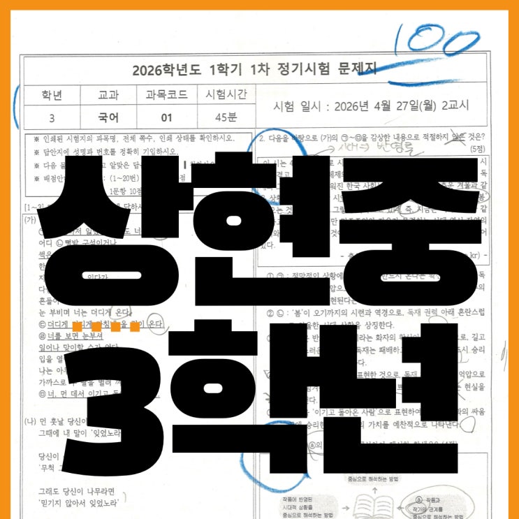 안녕하세요. 학원에서 내신을 책임지고 있는 원장입니다. 요즘 시험기간이 거의 마무리되어 가고 있죠. 저희 학원도 마지막 날까지 아이들과 함께 긴장하며 준비했습니다. 그런데 말입니다. 학생들 시험 준비시키면서 가장 공들인 게 무엇일까요? 바로 예상문제입니다. 영어 과목을 모르는 사람들은 “예상문제 그냥 기출 돌려막기 아니에요?”라고 생각할 수 있어요. 그런데 영어는 매년 새롭게 외부지문이 나오기 때문에 기출이 전혀 의미가 없습니다. 왜냐면 작년엔 전혀 없었던 지문이 올해 새롭게 나오기 때문에 매년 매년 새롭게 나오는 지문들로 예상문제를 만들어야 합니다. 더불어 진심으로 만드는 사람과 그렇지 않은 사람의 결과는 차....... <img src="https://blogthumb.pstatic.net/MjAyNjA0MjhfMTI5/MDAxNzc3MzU4MDQ1OTIy.mx-G2NC2hYEjBnx7DFiwcOtr-Itj236p9Gbahr8mYfwg.2MCIufonW2aCOI6yUSHPYfQaoEWGwLvy7y1dPKdNsnsg.JPEG/KakaoTalk_20260427_205107833.jpg?type=s3" />