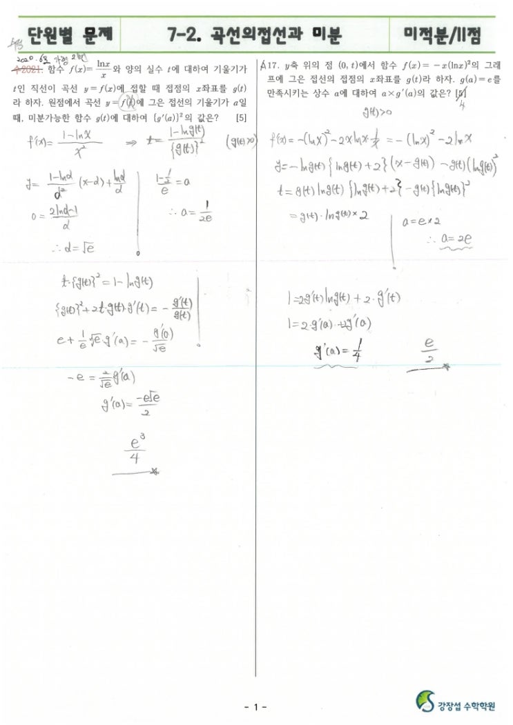 단원별문제-미적-7-2,곡선의접선과 미분-원장풀이