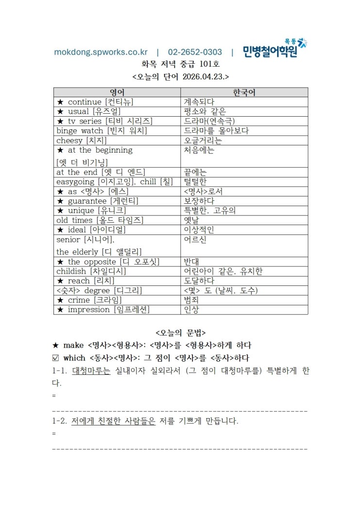 목동민병철어학원