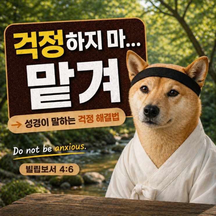 안녕! 나 서당개진도... 성경구절로 배우는 영어 표현 002 Do not be anxious 뜻과 활용법 (빌립보서 4:6) ✝️ 오늘의 성경 말씀 빌립보서 4:6 (Philippians 4:6) "Do not be anxious about anything, but in every situation, by prayer and petition, with thanksgiving, present your requests to God." 해석: "아무것도 염려하지 말고 모든 일에 기도와 간구로 너희 구할 것을 감사함으로 하나님께 아뢰라." 오늘의 핵심 영어 표현 Do not be anxious. 뜻: "걱정하지 마라 / 염려하지 말라." 말씀에서 배우는 포인트 이 구절은 단순히 “걱정하지 마라”가 아니라 ?....... <img src="https://blogthumb.pstatic.net/MjAyNjA0MjZfNCAg/MDAxNzc3MTU2MjE2NTMz.H-yDH6ol2V9l0eDjGkEcik8wOc4kaqf2zHKbY8FNAmkg.Zaq8xPnNBjyMg0xtv44Q_SlxHB935UQbinm7aXuImL8g.PNG/900_file_00000000b3b07209affdd5eb509a05a0.png?type=s3" />
