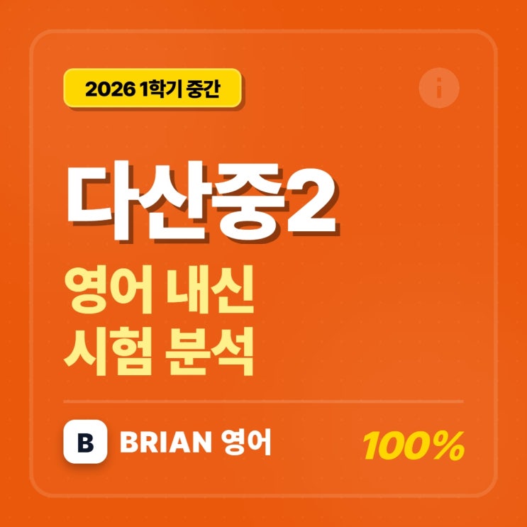 중등 시험이 끝났습니다. 작년부터 중2 시험에 논술형이 도입되고 점차 난이도가 높아지고 있습니다. 다산중도 점차 이전 시험에 비해 난이도가 상승 중입니다. 논술형의 경우 단답형 문제보다 어느정도 사고해야 풀 수 있는 "해석 없이 영작하는 문제"가 출제 되고 있고 이는 고등학교 영어시험의 추세를 반영한 결과입니다. 물론, 아직까지 변별력 높은 시험이라고 보기는 어렵지만 꾸준한 학습과 노력이 없다면 고득점을 받기 점차 힘들어지는 것도 사실입니다. 이를 위해 시험에 대한 복기가 필수적입니다. 저희 시험 분석지는 전반부에는 카드뉴스 이미지로 전반적인 시험 총평 후반부에는 학생들이 참고하도록 문항별 분석을 추....... <img src="https://blogthumb.pstatic.net/MjAyNjA0MjhfMjE0/MDAxNzc3MzE2NTE5OTI0.jH-kuJzsCOiTIOZ49RWkM_Puny25okx1thyPIbOTbzMg.aTdIAmm1Id9zyv5VZDH7Ud3sBwpIxN7E5IAkHF-NFxEg.JPEG/BRIAN%BF%B5%BE%EE_%B4%D9%BB%EA%C1%DF2_%BD%C3%C7%E8%BA%D0%BC%AE.jpg?type=s3" />