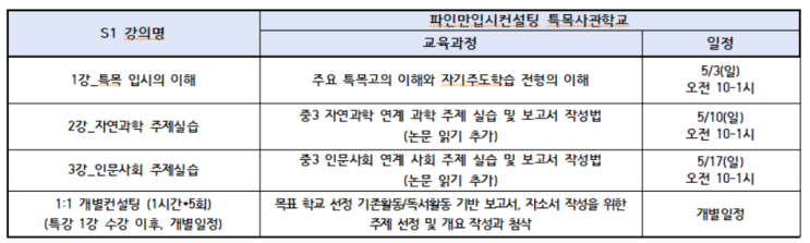 [파인만 입시컨설팅 특목사관학교 프로그램 S1, S2 개강 안내]