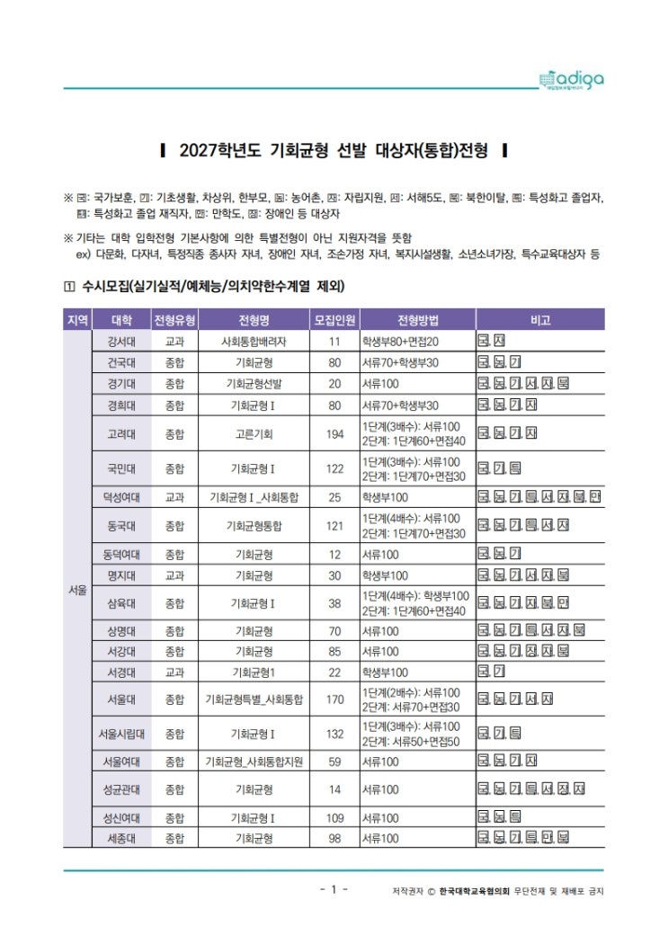 < 2027학년도 기회균형 선발 대상자(통합)전형 >