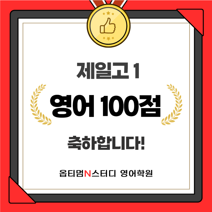 [옵티멈영어/제일고영어/성적상승] 제일고 영어 100점 축하합니다!