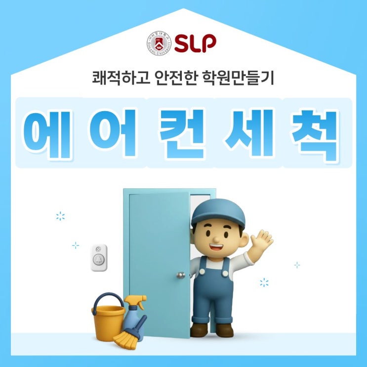 안녕하세요, SLP입니다! 아이들이 하루 중 꽤 많은 시간을 보내는 학원, 무엇보다 중요한 것은 쾌적하고 안전한 환경이라고 생각합니다. 특히 날씨가 점점 더워지면서 에어컨 사용이 시작되면서, SLP는 아이들의 건강을 위해 에어컨 관리에도 더욱 신경을 쓰고 있습니다. 본격적으로 더운날씨가 시작되기 전에 에어컨 내부 세척을 진행했습니다. ✔ 단순 청소가 아닌 ‘정밀 세척’ 진행 에어컨 필터만 간단히 세척하는게 아니라 에어컨을 직접 분해하여 내부까지 깨끗하게 세척하는 ‘정밀 세척’을 진행했습니다. 에어컨 내부에는 눈에 보이지 않는 먼지와 곰팡이가 쌓이기 쉬운데, 이런 오염은 호흡기 건강에도 영향을 줄 수 있기 때문에....... <img src="https://blogthumb.pstatic.net/MjAyNjA0MjhfMTA3/MDAxNzc3MzQ3MDI5MTcz.NqImvaw2tzDcjhHutX1N9iB0fz74S9E8mDeaR-1EiGgg.HkA48JWeRh5b3R4oAjoifZEDDP4HO3QZLohqfNuSCuwg.JPEG/%C1%A6%B8%F1%C0%BB_%C0%D4%B7%C2%C7%D8%C1%D6%BC%BC%BF%E4._%2819%29.jpg?type=s3" />