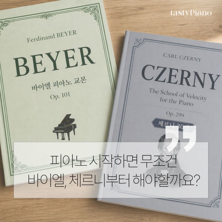 안녕하세요! 은평구 성인피아노학원 테이스티피아노 입니다 :D 많은 분들이 어렸을 때 다녔던 피아노학원을 생각해보면 바이엘 상,하 권을 마친 후에 체르니100번부터 그 다음 30번.. 순서대로 진도 나갔던 기억이 있으실거에요 :) 때문에 피아노를 처음 시작하려고 할 때 가장 많이 떠올리는 이미지 중 하나가 바로 ‘바이엘’입니다. “처음에는 무조건 바이엘부터 시작해야 한다” “기초는 바이엘로 다지는 거다” 이런 이야기를 많이 듣게 되다 보니 처음부터 바이엘을 해야 한다고 생각하시는 분들이 많습니다. 그리고 특히 성인 취미로 피아노를 시작하려는 경우에는 이 부분이 더 크게 느껴지기도 합니다. 어릴 때처럼 시간을 길게 투자....... <img src="https://blogthumb.pstatic.net/MjAyNjA0MjRfOTgg/MDAxNzc3MDIzNjQwNzA4.jGhl1bm6Zu2JrTk94dj2iiBP_ii6ZEmtsx8XjjXDXRQg.bVQE92IJ5pDo51uUZarWUFh82UD1HfGobU3zRBTXNYgg.JPEG/1.jpg?type=s3" />