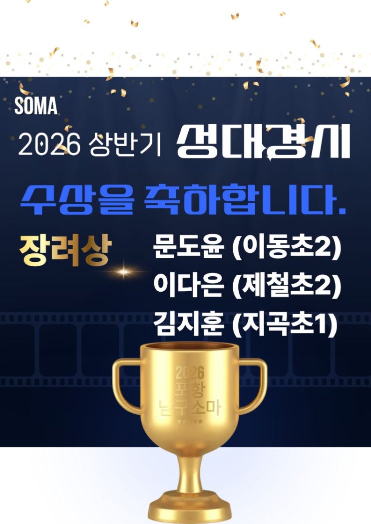 안녕하세요 포항사고력수학 소마 수학이 즐거워지는 포항남구소마입니다 오늘은 우리 포항 남구소마에 좋은 소식이 있어 알려드리려고 합니다. 2026상반기 성대경시대회 수상을 진심으로 축하합니다! 학부모님들께 잘 알려져 있는 성대경시대회는 전국 상위권 학생들이 도전하는 사고력 평가시험으로 단순한 문제풀이가 아니라 논리력, 사고력, 창의적 문제 해결력을 종합적으로 검증하는 시험입니다. 많은 학부모님들이 이 시험에 주목하는 이유는 아이가 얼마나 깊이 이해하고 생각하는지를 객관적으로 확인할 수 있기 때문입니다. 또한 이 과정을 통해 아이들이 스스로 사고하고 성장하는 힘을 기를 수 있다는 점에서 교육적으로 큰....... <img src="https://blogthumb.pstatic.net/MjAyNjA0MjhfMjIx/MDAxNzc3Mzc0MTI0Njgy.FVbRCiwnxXR3yYv7JV0fo-Wm4W7tGvgETe7jRscKE_sg.OOdaJJ1eHn_B9L0kewqJagfRnEkGD7ZIltkMd73ZC48g.JPEG/%BC%BA%B4%EB%B0%E6%BD%C3.jpg?type=s3" />