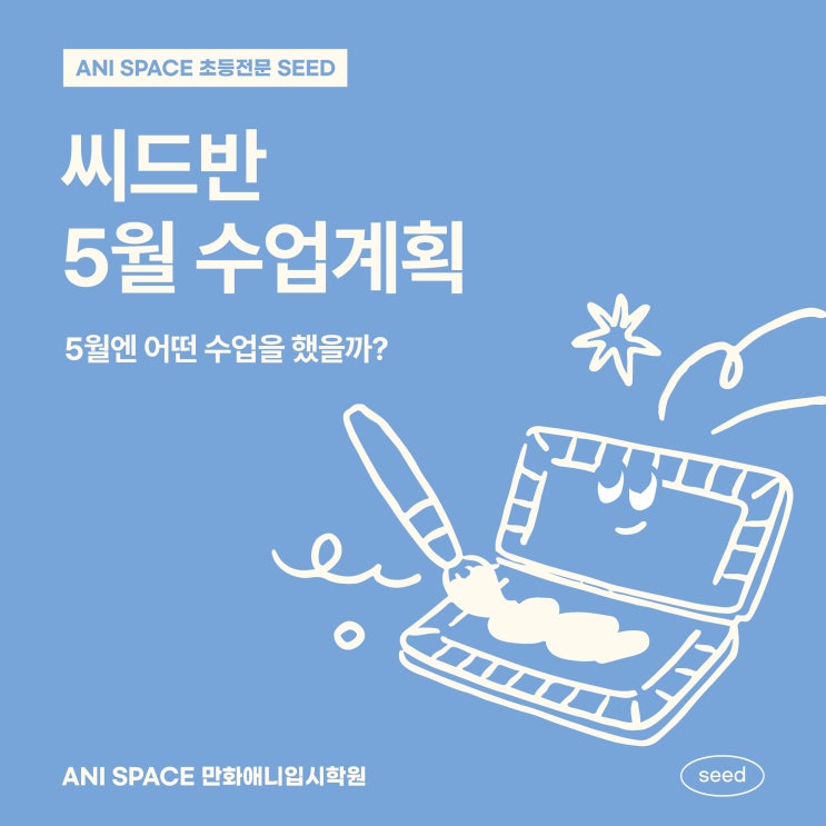 안녕하세요 애니스페이스 씨드반 5월 수업계획서로 인사드립니다! 행복한 가정의 달, 5월을 준비하며 어떤 수업을 하는지 안내해드리겠습니다! ▼▼▼공지▼▼▼ * 이번 5월에는 주니어/시니어 난이도를 나누지 않고 합동 기초 탄탄 수업으로 진행합니다! 씨드반 5월 수업계획서 1주차_가족 캐리커처 수업으로 부모님의 얼굴 특징을 관찰하며 캐리커처 기법을 익히고, 어버이날을 맞아 의미 있는 작품을 완성할 수 있습니다. 2주차_ 인체 도형화 기초 수업으로 다양한 방향의 자세를 기본 도형으로 단순화해 표현하며 인체 구조 이해와 포즈 구성 능력을 향상시킬 수 있습니다. 3주차_ 동세 드로잉 응용 수업으로 2주차에 배운 도형화를 바탕으로....... <img src="https://blogthumb.pstatic.net/MjAyNjA0MjhfMTgy/MDAxNzc3MzY4MDQzNDkw.P0oLIsiehDvXLxd7IUMlI_aREjgvoP4jL8ZF_bDkzbsg.jKit24dUTL7r0o83kEut4pu53Gn5hLjoXx5fqBzlPgAg.JPEG/26%B3%E2_5%BF%F9_.jpg?type=s3" />