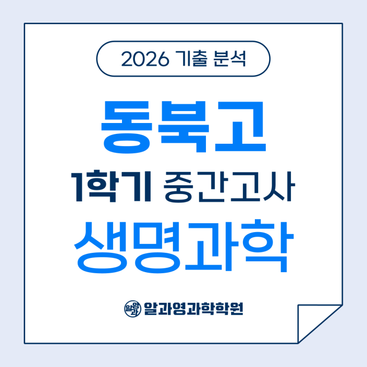 안녕하세요? 알과영과학학원입니다. 오늘 동북고 2학년 학생들이 생명과학 중간고사를 마쳤습니다. 시험이 쉬우면 쉬운대로, 어려우면 어려운대로 아쉬움이 남기 마련이지만... 우리 학생들~ 처음 겪는 '고2 내신 폭탄 부담' 속에서 정말 수고 많았습니다. 오늘 치른 생명과학 시험, 간단히 리뷰해보며 시험 준비 과정이나 시험운용 태도를 돌아보고 아쉬운 부분이 있었다면 차분히 보완해 나가는 시간이 되길 바랍니다. 올해 학교들마다 유독 과탐 시험과 관련된 이변과 이슈가 많았는데요~ 방학 동안 과탐 준비를 충분히 해온 학생들은 시험이 너무 쉬우면 변별력이 떨어지지 않을까 걱정했고, 국영수에 집중하느라 과탐 대비가 부족....... <img src="https://blogthumb.pstatic.net/MjAyNjA0MjJfMjgy/MDAxNzc2ODQ5MDY2MzM0.nhe4eK-vs98IC1FHbFln6K5Wq9OBjpHx4EFvOX-zA6sg.9umLNQFyyEt_TGV9bXXY4MD1qx-8BZc9D7Lb4GZ4BV4g.PNG/%3F%8F%99%EB%B6%81%EC%83%9D%EB%AA%3F.png?type=s3" />