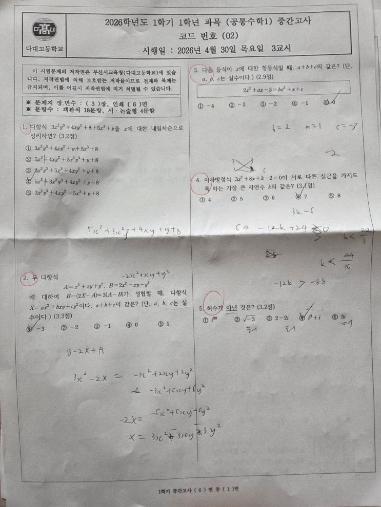 시험치고 바로 와서 시험지 주고 가라고 했더니 바로 가져 왔네요. 웃는 얼굴에 침 못뱉는다고 "샘 다음에는 열심히 하겠습니다."하고 선수 치더니 부리낫게 도망갑니다. 풀어보니 모든 문제가 다 가르친 문젭니다. 연산 단원이라 알아도 열심히 연습하지 않으면 시간이 모자라거나 실수할 가능성이 높습니다. 아직 시험 안친 학생들은 오는 일요일 불러 따로 보충할 예정입니다. 부모님께 문자 보내어 양해를 구할 생각입니다.ㅎ ㅎ #다대수학학원 #다대영어학원 #다대초등수학 #다대중등수학 #다대고등수학 #다대초등영어 #다대중등영어 #다대고등영어 #사하구수학영어학원 #다대학원 #다대예비중1 #다대예비고1 #낭만수학영어 #GnB학....... <img src="https://blogthumb.pstatic.net/MjAyNjA0MjRfNjAg/MDAxNzc3MDA1ODkyNjc4.oysIvbBTKkutptkc07xj08JXOCNHpRHmWz0AUFfsna8g.cwDetlO8Rhr18mUK-S3gr4szeo7GLDD1WbJXnUPWuUcg.JPEG/KakaoTalk_20260424_132757838.jpg?type=s3" />