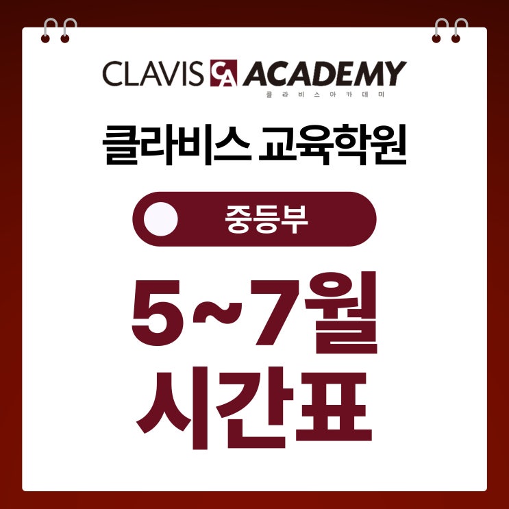 [수학전문학원] 클라비스교육학원 중등부 5~7월 시간표 안내