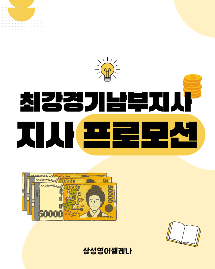 안녕하세요! 삼성영어셀레나 경기남부지사입니다. 우리 원장님들의 뜨거운 열정과 아이들을 향한 진심 어린 관리에 보답하고자, 오직 우리 지사에서만 만날 수 있는 '지사 단독 역대급 프로모션'을 진행합니다! 놓쳐서는 안될 순증 프로모션! 이번 기회를 통해 학원의 내실을 다지고, 한 단계 더 높이 도약하는 기쁨을 누려보시길 바랍니다. 그럼, 카드뉴스를 통해 하나씩 살펴볼까요? 최강경기남부지사만의 역대급 프로모션! ✨ 순증 프로모션은 본사에서 진행하는 일반적인 행사와는 다른, 오직 우리 경기남부지사 원장님들을 위해 특별히 기획된 프로모션입니다. 우리 지사만의 자부심을 가지고, 모두 함께 도전해 보시는....... <img src="https://blogthumb.pstatic.net/MjAyNjA0MjRfMTYg/MDAxNzc3MDEzNDM0OTgz.gGPZOUn546amiptTJm-ZMkndmpuXsaPqi7e9MOVVxVog.gEZleH8AiqkEJmfmk0fm_lBmWDupNgSRFoGU29TuyuYg.PNG/1.png?type=s3" />
