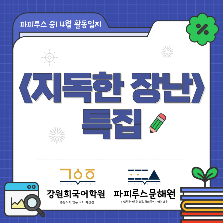 [동탄중등국어논술]파피루스 중1 활동일지 4월 <지독한 장난> 특집