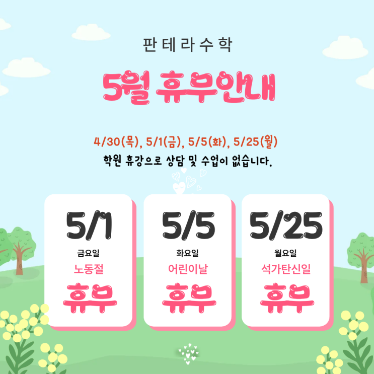 판테라수학 5월 휴무일 안내