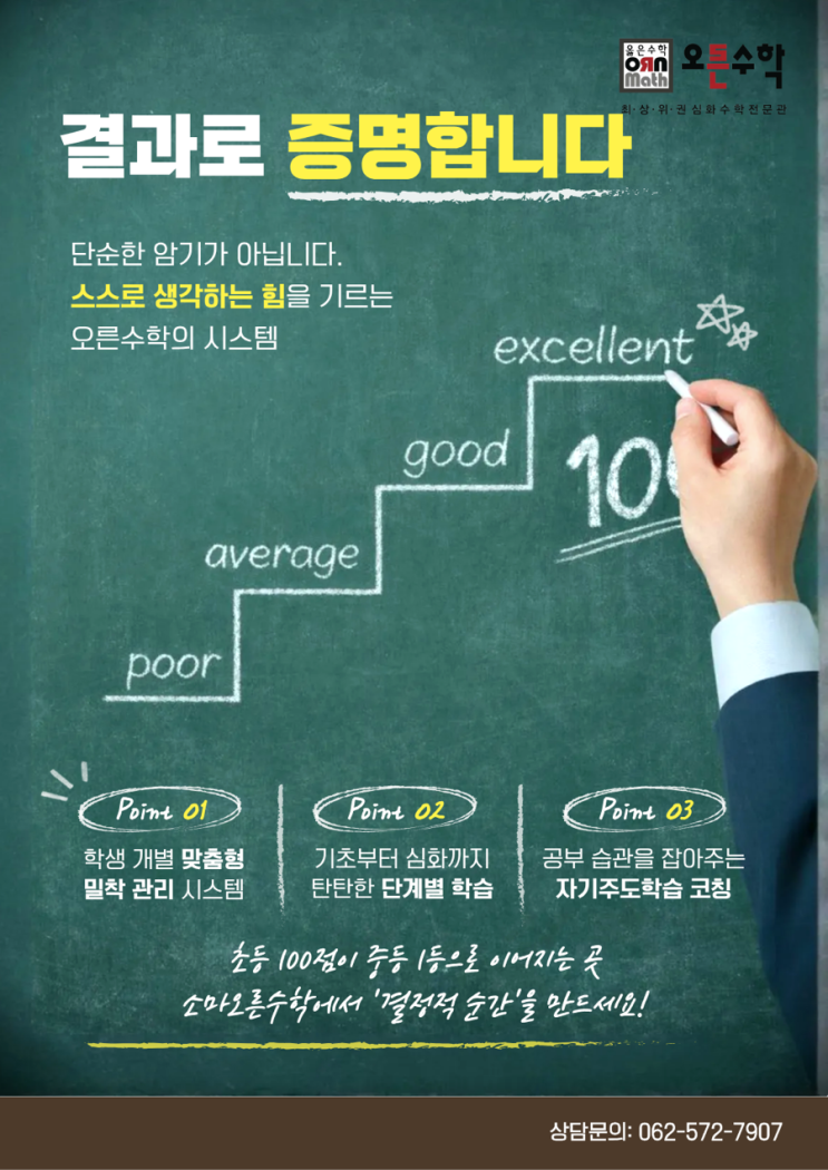 안녕하세요, 소마오른수학입니다. 초등학교 시절, 단원평가만 보면 늘 100점을 받아오던 아이. 부모님들은 당연히 "우리 아이는 수학을 잘하나 보다" 라고 생각하십니다. 하지만 중학교 진학 후 첫 시험 결과를 보고 당황하시는 경우가 많습니다. "초등 때는 학원 없이도 곧잘 했는데, 중학교 수학은 왜 이렇게 어려워할까요?" 오늘 소마오른수학에서 그 근본적인 이유와 해결책을 짚어드립니다. 1. 초등 수학은 '직관', 중등 수학은 '논리'입니다 초등 수학은 눈에 보이는 구체적인 상황을 다룹니다. 사과 3개, 피자 한 판 등 직관적으로 이해할 수 있는 내용이 많습니다. 그래서 유형별로 문제를 많이....... <img src="https://blogthumb.pstatic.net/MjAyNjA0MjNfMjM3/MDAxNzc2OTI3OTg0MjM1.V28ySxbLvo4eEp2BRk6tTo_nx2GaqtMZ80jMXyP4vR4g.0ZZ6Y2ThwmO5rhYVYrNze-MVBS1IIIMpCtGDqUpts_4g.PNG/%C1%A6%B8%F1%C0%BB%A3%DF%C0%D4%B7%C2%C7%D8%C1%D6%BC%BC%BF%E4..png?type=s3" />