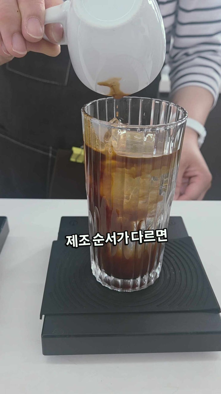 롱블랙과 아메리카노는 모두 블랙커피로 분류되지만, 실제로는 제조 방식과 물·에스프레소가 만나는 순서에 따라 질감과 인상이 달라질 수 있습니다. 이번 수업에서는 두 음료를 단순히 맛으로만 비교하지 않고, 직접 계량하고 추출한 뒤 브릭스와 TDS를 측정해 농도 차이를 확인해보았습니다. 이 과정에서 중요한 점은 겉보기에 비슷한 음료라도 수치상 차이가 나타날 수 있다는 점입니다. 이 차이는 단순한 숫자 차이에 그치지 않고, 바디감, 선명도, 여운, 밸런스 같은 실제 음용감으로 이어질 수 있습니다. 커피는 감각의 영역이지만, 수치와 함께 보면 그 차이를 더 명확하게 이해할 수 있습니다. 그래서 수업에서도 직접 보고, 추출하고, 측....... <img src="https://phinf.pstatic.net/image.nmv/blog_2026_04_25_3680/diXdPFL5BZ_03.jpg?type=f480x480" />