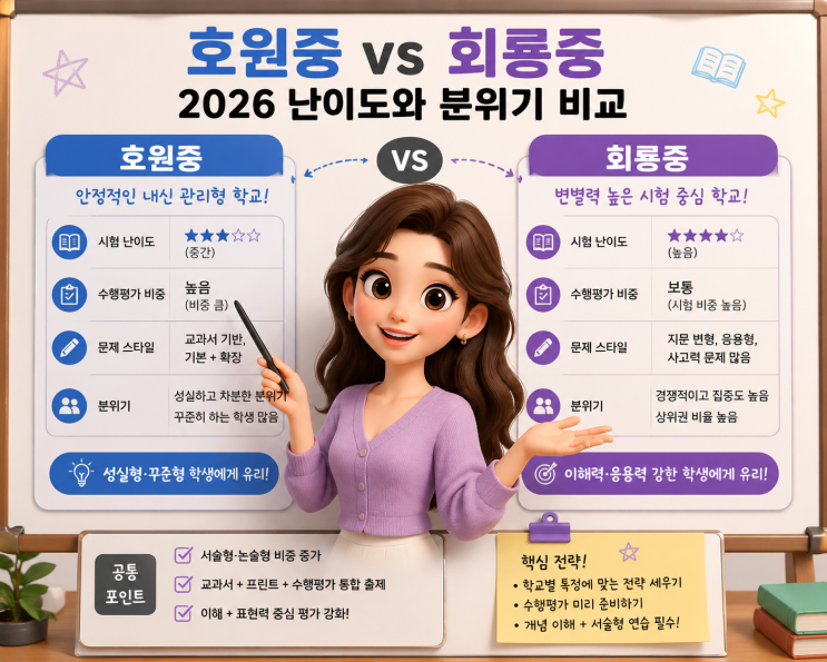 의정부 호원중 vs 회룡중 시험 난이도 비교|2026 내신 대비 공부 전략 총정리