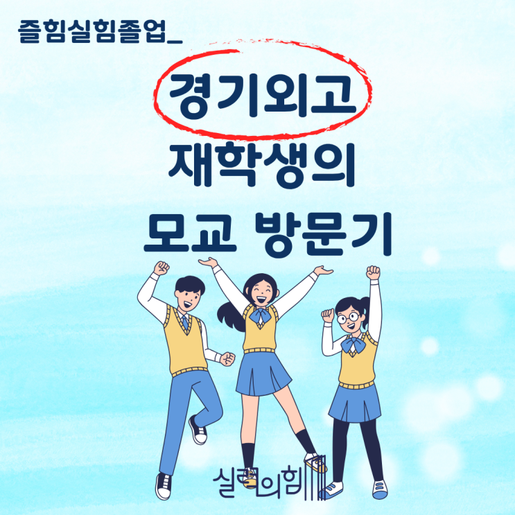 경기외고 재학생의 모교방문기 안녕하세요 실력의힘 입니다. 오늘은 우리 즐힘·실힘 졸업생, 경기외고 1학년 학생들이 모교인 철산중을 방문했습니다 ♡ (학교 공식 일정) (교복을 예~~쁘게 차려 입은 모습이 너무 사랑스럽네요 ♡) ("저희 블로그에 얼굴 올라가나요?" 묻는 우리 예쁜 아이들 입니다 ♡) 모교에 돌아와 경기외고 생활을 소개하고 후배들과 이야기를 나누는 시간이 꽤 뜻깊었던지, 한 시간 가까이 대화를 이어갔습니다. “원장샘~~ 중간고사 끝나고 자소서 좀 도와주세요~~~”라는 실힘 중3 재원생의 모습에서 후배들에게 선한 영향력을 주는 모습이 참 대견했습니다. 모교 방문도 피곤했을텐데 실힘도 들러 학원에서 면....... <img src="https://blogthumb.pstatic.net/MjAyNjA0MjdfMjUg/MDAxNzc3MjQ2ODE3MzA2.1HTk4eYkJk7W0CQynrSNtwAfRsXBvLrw6Oer7F75D6Ag.Y1Bkwoa5UaM7WUUGbYQdPNoHmRURT6tcycONeU_EZe8g.PNG/%BD%C7%C8%FB_%C1%B9%BE%F7_%B0%E6%B1%E2%BF%DC%B0%ED_%C0%E7%BF%F8%BB%FD.png?type=s3" />