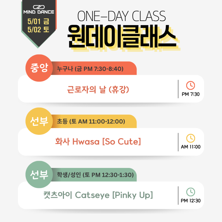4월 다섯째주 [금요일, 토요일 댄스 원데이클래스] | 중앙점 휴무, 선부점 화사 쏘큐트, 캣츠아이 핑키업 | 안산 중앙동, 선부동 마인드 댄스학원, 안산댄스학원, 시흥댄스학원