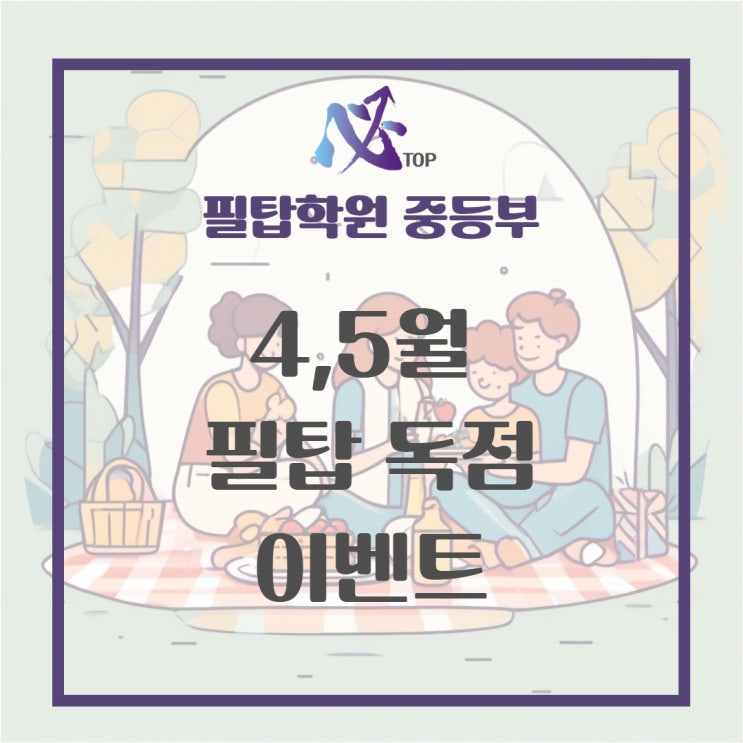안녕하세요! 기흥구 구갈동 중등학원 필탑학원 중등부입니다. 벌써 다음주면 아이들 제 1차 지필고사며 필탑학원에도 대잔치가 몰려오게 됩니다. 4월 마지막 주부터 5월 한달간 진행하는 BIG EVENT 3가지를 소개해드리겠습니다! 1. 필탑만의 중등 대상 ‘비교과 수업’ 중학생부터 고등 과정까지 미리 경험해볼 수 있는 비교과 독서 수업이 1학기 지필고사 직후, 4월 29일 ~ 4월 30일에 진행됩니다! 무려 입시 컨설턴트이신 원장님께서 직접 준비하신 수업으로, 퀄리티 높은 강의 프로그램입니다. 무엇보다 중등 과정에서 이러한 학습 경험을 한다는 것은 매우 의미 있으며, 시험이 끝난 이후에도 아이들이 알찬 시간을 보낼 수 있는 좋은 기....... <img src="https://blogthumb.pstatic.net/MjAyNjA0MjFfMjMz/MDAxNzc2NzY1MjU3MjIz.Ub1SBTZLIrE-xHkoNOUWUcThrG7sGCGRgFn3PT-YDIgg.ujmToy2kcwpPaP3q6-2fqa2w-1ha39vethrz2D3dX0wg.JPEG/%BA%B9%BB%E7%BA%BB_%C7%CA%C5%BE_%C1%DF%B5%EE%BA%ED%B7%CE%B1%D7_%C7%A5%C1%F6.jpg?type=s3" />