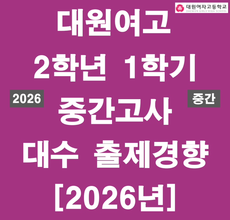 2026년 대원여고 2-1 중간 대수 출제경향