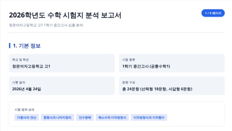 2026년 1학기 중간 창문여고 시험 분석지