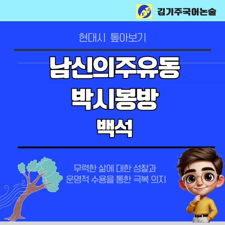 반갑습니다! 여러분의 국어 실력을 책임지는 김기주 국어 주클래스입니다. 백석의 <남신의주 유동 박시봉방>은 시 전체의 호흡이 하나의 서사처럼 이어지는 산문시인 만큼, 구절 하나하나를 놓치지 않고 분석하는 것이 매우 중요합니다. 이 시는 절망적인 고립의 끝에서 발견한 '굳고 정한' 의지를 노래한 작품으로, 매년 수능과 내신에서 매우 중요하게 다뤄지는 필수 작품입니다. 감상의 길잡이 백석의 <남신의주유동박시봉방>은 일제 강점기 말기, 가족과 집을 잃고 타향에서 떠도는 지식인의 고뇌와 성찰을 담고 있습니다. '편지' 형식을 빌려 자신의 근황을 전하는 이 시는, 절망적인 자기 비하에서 시작해....... <img src="https://blogthumb.pstatic.net/MjAyNjA0MjhfMjgz/MDAxNzc3MzMyMTkyNTAz.dmShhd_HaAlnU3g8QmtDvFKp8PEKifeLp8B8Ujz8QEEg.Iu669qy11tbqi2edJYZByVIR1fAX6NTCQCdHeAg6M6Ug.PNG/%C6%C4%B6%F5%BB%F6%B0%FA_%C8%B8%BB%F6_%BD%C9%C7%C3%C7%CF%B0%ED_%B1%F2%B2%FB%C7%D1_%BA%F1%C1%EE%B4%CF%BD%BA_%C4%AB%B5%E5%B4%BA%BD%BA_%C0%DB%BC%BA_%BF%E4%B7%C9_%BE%C8%B3%BB_%B5%F0%C0%DA%C0%CE_%C5%DB%C7%C3%B8%B4_%C0%CE%BD%BA%C5%B8%B1%D7%B7%A5_%C6%F7%BD%BA%C6%AE%C0%C7_%BB%E7%BA%BB_%2829%29.png?type=s3" />