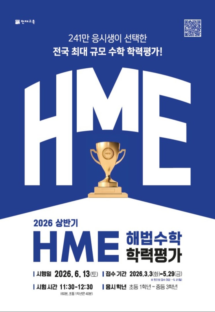 안녕하세요, 의창초등학교 학부모님! 스마트해법수학입니다. 2026년 상반기 HME 전국 해법수학 경시대회 시즌이 돌아왔습니다. 우리 아이의 수학 실력을 객관적으로 점검해 볼 수 있는 절호의 기회, 왜 지금 준비해야 할까요? 1. "우리 아이 수학 점수, 학교 안에서만 괜찮은 건 아닐까?" 학교 단원평가 점수만으로는 우리 아이의 전국적인 위치를 파악하기 어렵습니다. HME 경시대회는 전국 최대 규모의 응시 인원이 참여하는 시험으로, 아이의 현재 실력을 정확한 수치와 데이터로 마주할 수 있는 소중한 '객관적 지표'가 됩니다. 2. 한계를 돌파하는 '심화 사고력'의 힘 기초 연산을 넘어선 변....... <img src="https://blogthumb.pstatic.net/MjAyNjA0MjdfMTcx/MDAxNzc3Mjg4NzgxMTQw.iS1j_a05s4kaWNtxIdZRIErRnwIxGzecY4pgEMTMRpcg.LrxNTbLG8sZurhbCQ5r0Y9M2EnH1yXuKY_UG1n3rk20g.JPEG/Screenshot_20260324_100015_NAVER.jpg?type=s3" />