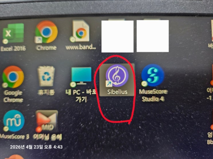 설치완료한 시벨리우스 좌클릭 두 번 하면요 요렇게 New Score 란이 펼쳐지고요 맨 윗줄 두 번 째 Blank 부분을 좌클릭 한 번 해줍니다 그러면 요렇게 A4 사이즈 세로형 Portrait 로 자동 셋팅되어 펼쳐져요 만약에 가로형 악보를 만들고 싶으면 가로형 Landscape 를 선택하면 됩니다 이제 그아래 Change Instruments 클릭하고요 여기서 Add to Score 클릭 Piano(a) Piano(b) 두 줄이 나타나는데. 높은음자리.낮은음자리 합한 보표가 뜨지만 만약 높은음자리 오선만 필요하면 Piano(b)클릭 Delete from Score 클릭하시면 한 줄 짜리 악보가 나타나요 결정되면 OK클릭하고요 세로형 높은음자리표 악보가 나타나고 Time Signature Set up에서 4/4박....... <img src="https://blogthumb.pstatic.net/MjAyNjA0MjNfMTE5/MDAxNzc2OTMwNjc5NjUy.amJ7Xo7BNYf_HhchwjPM7nlR6A-SIgaZZ-Nrk5o3bpYg.-7m1EKspzVL1V771ycXnyzaCUm2EjVT5PrfzxklfIUcg.JPEG/900%A3%DF20260423%A3%DF164325.jpg?type=s3" />