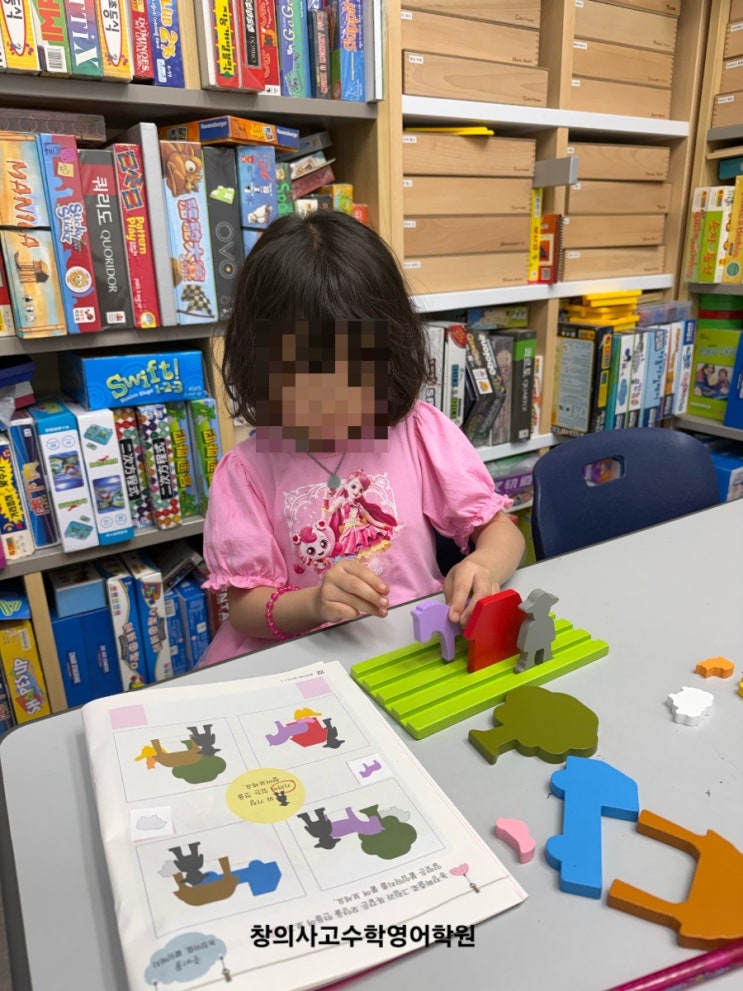 놀이 속에서 완성되는 수학적 사고 안녕하세요, 창의사고수학영어학원입니다 오늘은 사고력 수업에서 진행된 활동을 바탕으로, 아이들이 어떻게 수학적 개념을 자연스럽게 이해하고 확장해 나가는지 소개드리겠습니다. 1.브레인퍼즐– 조건을 해석하는 힘 오늘 퍼즐리그에서는 동그라미 연결 퍼즐을 진행했습니다. 검정색 동그라미를 제외하고 흰색 동그라미만 연결하여 하나의 고리를 완성하는 활동으로, 단순한 퍼즐처럼 보이지만 핵심은 조건을 정확히 이해하고 적용하는 능력입니다. 아이들은 처음에는 모든 동그라미를 연결하려는 경향을 보이지만, “검정은 제외”라는 조건을 인지한 이후에는 선택과 집중을 통해 해결해 나갑니다. 이 과....... <img src="https://blogthumb.pstatic.net/MjAyNjA0MjlfNzgg/MDAxNzc3NDY0NTA2MTU1.f12dFJBoN_HyM-O7YPzSZy4mdQZRJPQh4OQ8QKnNFOEg.o2Fq5tcg4hKpZpQf5vs-lxNSpQvsMdVsg2rvBmm2V_Mg.JPEG/900_1777464505385.jpg?type=s3" />