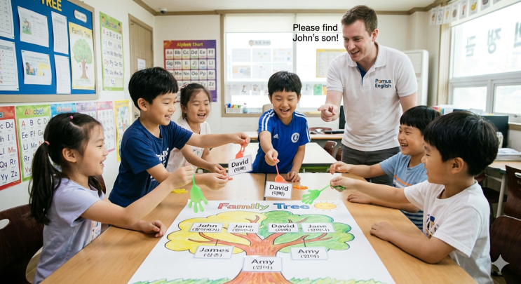 안녕하세요! 태전동 어린이들의 영어 실력을 게임과 함께 책임지는, 파머스 영어 광남캠퍼스의 에릭쌤입니다! 매주 금요일, 우리 아이들이 손꼽아 기다리는 시간이 있죠? 바로 파머스의 시그니처 이벤트, TGIG(Thank God It's Game day)입니다! 단순히 책상에 앉아 단어를 외우는 지루한 방식은 이제 그만! 오늘은 아이들이 정말 좋아하는 손바닥 끈끈이를 활용해 복잡한 가족 관계(Family Members)를 완벽하게 마스터하는 시간을 가졌습니다. 그 뜨거웠던 현장, 지금 바로 소개해 드릴게요! 완벽하게 준비된 Family Tree와 이름표! 영어에서 가족 관계는 생각보다 복잡하죠? grandfather, grandmother부터 aunt, uncle, 그리고 cousin까지....... <img src="https://blogthumb.pstatic.net/MjAyNjA0MjRfMTgz/MDAxNzc3MDMzOTUyNTk5.gFeect__YV6sry_M845ngwsRYUFtg337CaLBywKogBgg.CdpQKsOKlSR712l6nu8C0eDbDvUKBYLhe2UyP-7Va4sg.PNG/Gemini_Generated_Image_j347pij347pij347.png?type=s3" />