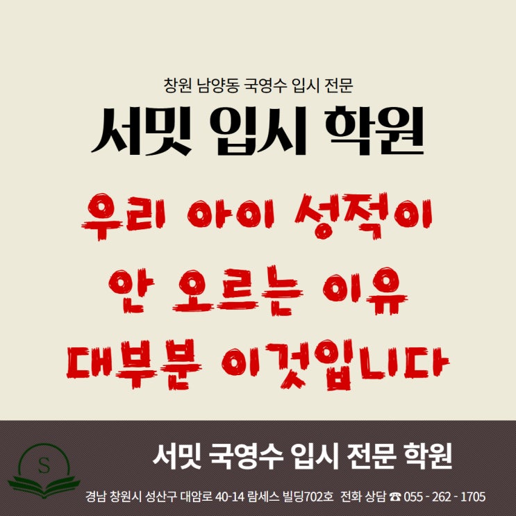 창원 남양동 중등 내신학원, 우리 아이 성적이 안 오르는 이유 대부분 이것입니다