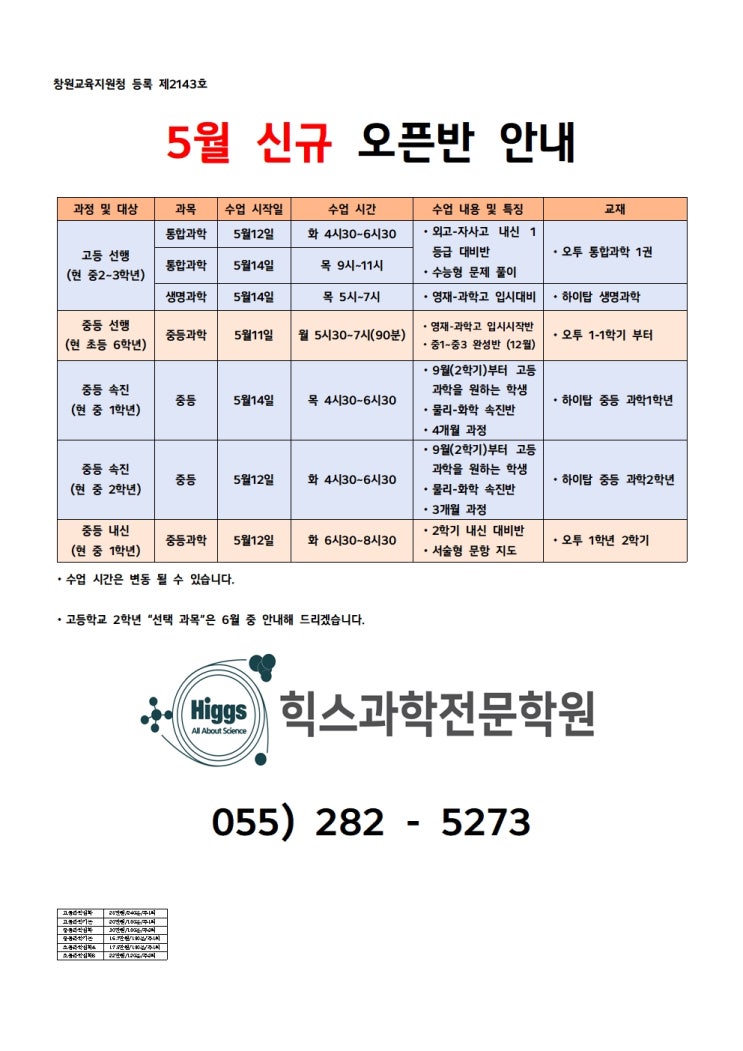 5월 신규반 안내 입니다.