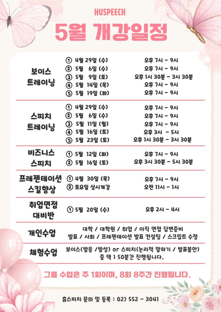 [강남 스피치학원] 2026 5월 개강일정 안내