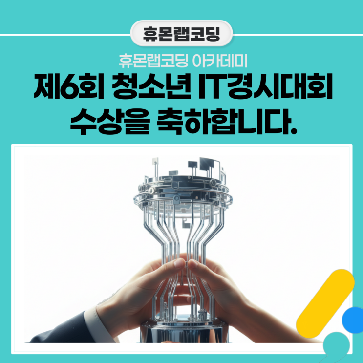 안녕하세요! 스스로 생각하는 힘을 키우는 휴몬랩코딩 아카데미 입니다. 지난 3월 개최된 청소년 IT경시대회에서 휴몬랩코딩에서의 출전 학생이 수상 소식을 전해왔습니다! 청소년IT코딩대회란? 전국에서 진행되는 대표적인 코딩 알고리즘 대회로, 초, 중, 고등학생들의 정보기술 역량과 창의적인 문제 해 능력을 겨루는 대회입니다. 분야는 크게 프로그래밍 언어(C, Python 등), 알고리즘, AI, SW 개발 등으로 이루어져 있으며, 이를 통해 미래 IT 인재를 발굴하고 육성하는 대회입니다. 제6회 청소년 IT경시대회 수상을 축하합니다. 전국에서 진행되는 IT대회인 만큼 경쟁 상대도 많고, 특히 난이도가 높은 문제가 출제됨에도 불구하고 수상을....... <img src="https://blogthumb.pstatic.net/MjAyNjA0MTdfMjAx/MDAxNzc2MzkwMTA2Mjk2.w3UT6UdDDUKhbAChJvVdCPyyc_8V4RX1pRZWLezqkFsg.8QS-TYyJh1GX6VsBR-NzHLMRCQavLDAQf5fkykYPqO8g.PNG/%BA%ED%B7%CE%B1%D7-003.png?type=s3" />